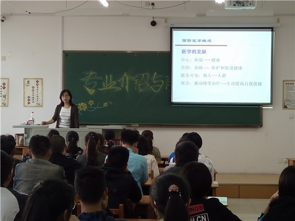 于前卫南区李四光楼213教室为2017级预防医学专业新生准备了一场以“专业介绍和前景展望”为主题的入学教育系列讲座。预防医学系主任叶琳教授亲临主讲,全体2017级预防医学专业学生出席本次讲座。