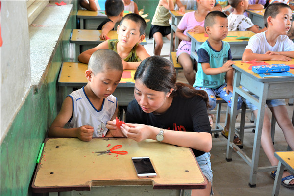 下午的教学活动中,志愿者通过启发的方式,鼓励小朋友们给父母写一封信,表达自己对他们的感恩与爱。大部分小朋友很快就开始动笔,刷刷地在纸上写着,但也有少数小朋友抓耳挠腮,志愿者和他们进行了进一步交流,发现这些小朋友的父母大多离开村子,到大城市去打工以贴补家用,像我们在新闻中了解到的外地务工人员一样,一年回家的次数屈指可数。这些“留守儿童”对他们父母既充满了思念,又委屈于没有父母的时时陪伴,有的小朋友的泪珠还打湿了稿纸,让志愿者们的心难过地揪在了一起。对这些孩子,是既心疼,又无奈。书信课的最后,志愿者向表现出色的孩子赠送了 onejav
