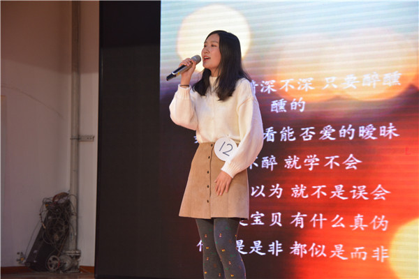 决赛共分为三个环节,首先,闯入决赛的十二位选手两两互成一组进行合唱,以此开始比赛的第一环节。在比赛的整个过程中,选手们不甘示弱,他们用各具特色的声线展现了自己的实力。比赛很快就进入了高潮,选手们在舞台上不仅尽情地展示了自己的才艺,创造出了一幅幅声色兼美的亮丽风景,而且还用自己动听的歌声和不俗的舞台表现,诠释着青春飞扬的主题,给观众带来一场不同凡响的听觉盛宴。整场比赛高潮迭起,精彩纷呈,在场观众不时爆发出阵阵掌声和呐喊声。经过层层选拔,最终甄选出三位同学进行争冠。大家用热烈的掌声迎来了选手邱禹琪的演唱———《南方姑娘》,他那低沉而富有磁性的歌声似乎在娓娓讲述一个关于南方姑娘在北方的故事,现场观众如痴如醉。最突出的是2015级王小木同学的一首《梦一场》,细腻柔和的嗓音让大家连连称赞。让人印象深刻的曲目还是2017级杨雨寒同学带来的歌曲《胡桃夹子》,低缓沉稳的歌声似乎在婉转地诉说着另一世界的人和景。