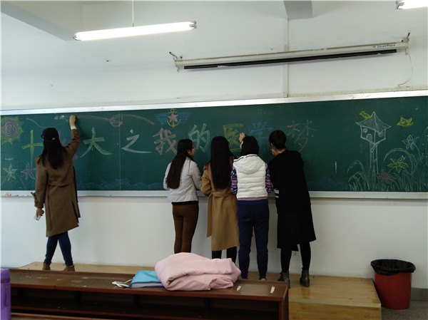 此次活动形式是拍摄宣传视频,全体同学每人在视频中讲述一句话,或是对本专业的介绍,或是对未来的积极展望,或是表达现身医学事业的坚定决心,同学们参与热情高涨,纷纷用富有感情的语调讲述着自己的故事。拍摄过程在团支书的指挥下有条不紊地进行。宣传视频拍摄结束后,同学们在一起开了一个分享会,团支书刘霖霖同学给我们分享了学习十九大精神的感悟,部分同学也进行了发言,班委们纷纷对近日工作进行了总结。