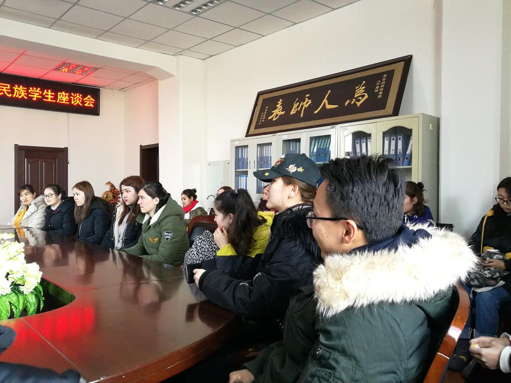于3月8日中午在学院办公楼三楼报告厅举办了2018年新疆、西藏籍少数民族学生座谈会。学院党委副书记兼副院长、2014级辅导员刘丽,2017级辅导员郭倩君、2016级辅导员霍睿及全院新疆、西藏籍少数民族学生参加了此次会议。
