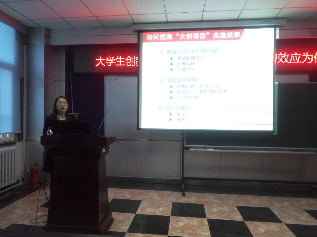 三楼报告厅举行,放射医学系主任金顺子教授主讲,参与2016、2017年“大学生创新创业训练计划”项目研究的同学参与了此次讲座。