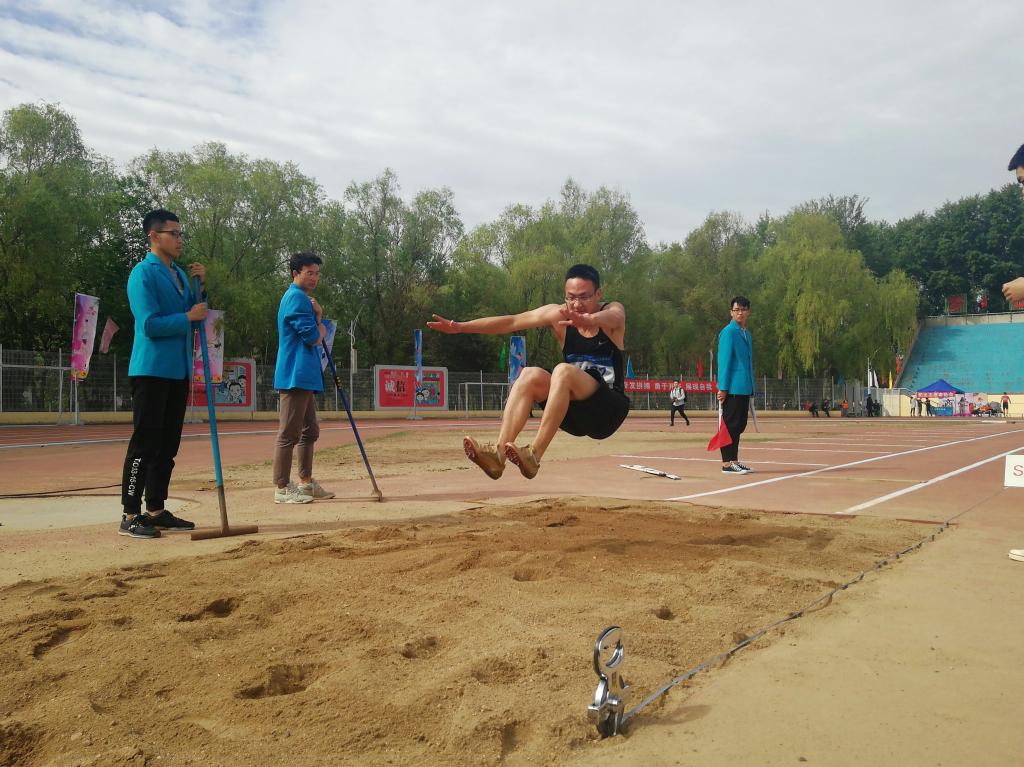 王兆丰同学上场时,精神饱满,十分自信。比赛开始,只见他逐渐加快助跑速度,在跳跃线上纵身一跃,腾空时双臂用力后摆,收腹举腿,动作十分标准,以完美的姿势落入沙地,取得了5.7米的好成绩。出于自信及保存体力的原因,王兆丰放弃了初赛起跳三次择优录入成绩的权利,并凭借一次成绩顺利进入决赛。决赛第一跳,由于起跳时的微小失误,王兆丰同学并没有发挥出正常水平。而在第二跳,因部分沙地坚硬等原因,王兆丰在下落时不慎扭到了脚踝,所以没能进行第三跳。尽管如此,王兆丰同学依旧凭借5.7米的优异成绩在参赛运动员中脱颖而出,获得了跳远比赛的最终胜利,为 onejav