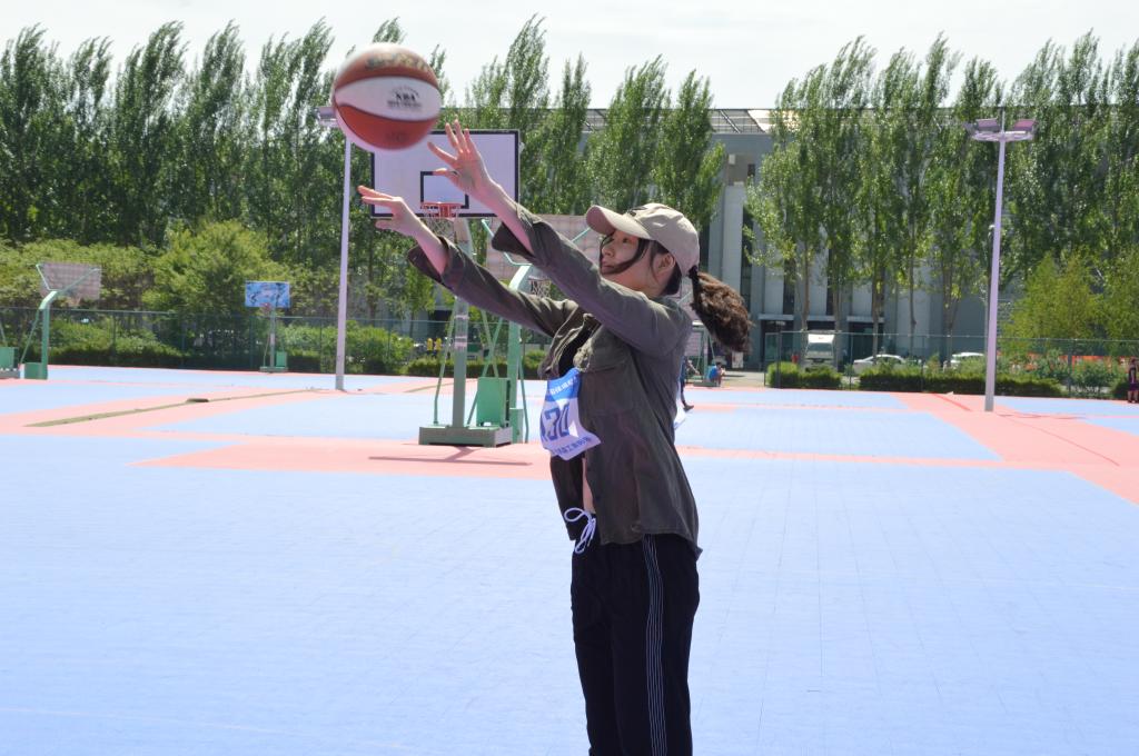 小小的一颗球,寄托着希望,奋力一抛的瞬间,一道闪亮的弧线划破美丽的长空,刺破炎炎烈日。女选手们身着个性鲜明运动衣,目光坚定的,整齐地排成一排,有序地进行着女子学生组一分钟定点投篮大赛。比赛开始前,4130号选手罗慧佳同学在有条不紊的进行着赛前的准备工作,深吸气,缓呼出,调整着呼吸,她的目光坚定而又执着。当听到裁判哨声,比赛计时一分钟开始。身高的优势与运动会前刻苦训练让她在比赛中发挥得更好,罗慧佳膝盖稍曲、起跳、出手,干净利落,篮球毫不犹豫向篮筐飞去。一分钟定点投篮比赛,可谓巾帼不让须眉。她起跳,投篮,每个动作都接近完美,每次出手都细心瞄准,每个错过的球都会仔细记在心里,吸取经验调整力度和角度。