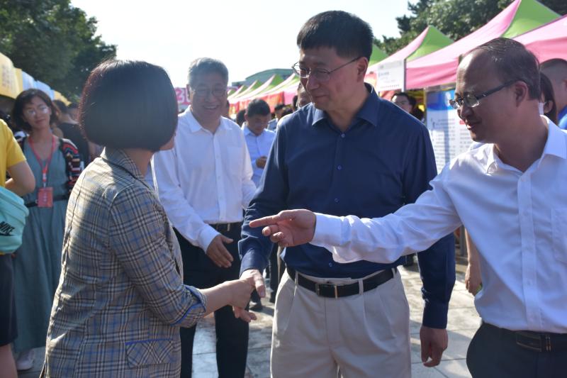 迎新地点后,与在场老师、领导及志愿者们热情握手,亲切问候。