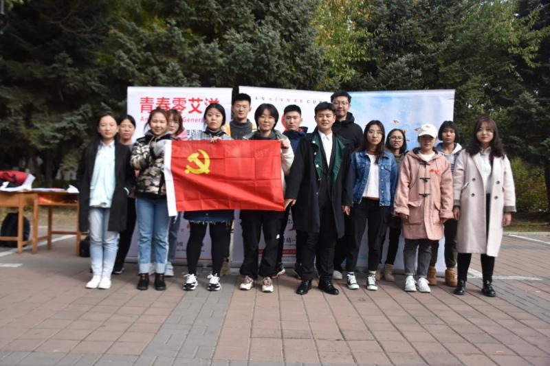 学生红十字会于前卫南区体育馆北广场举办“携手你我,让爱与艾同行”知识竞答宣传活动。