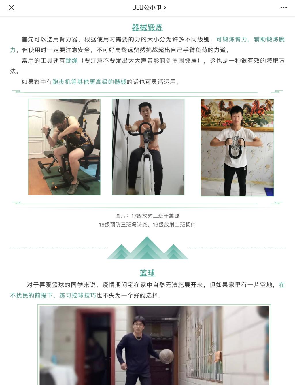 活动一经开展,便得到了同学们的热烈反响。无论是王淇同学带来的舞蹈视频,还是于蕙源、冯诗尧、刘朔等同学提供的健身照片,以及王慧洁、嘎玛顿珠同学带来的户外运动录像,都展现出同学们身上的青春活力和满满的正能量。当然,在户外运动的同学们也十分注意自己和他人的健康安全,人流稀少的场所进行锻炼。同学们的学习生活并没有因为疫情而受到影响,反而增添了许多新的元素。