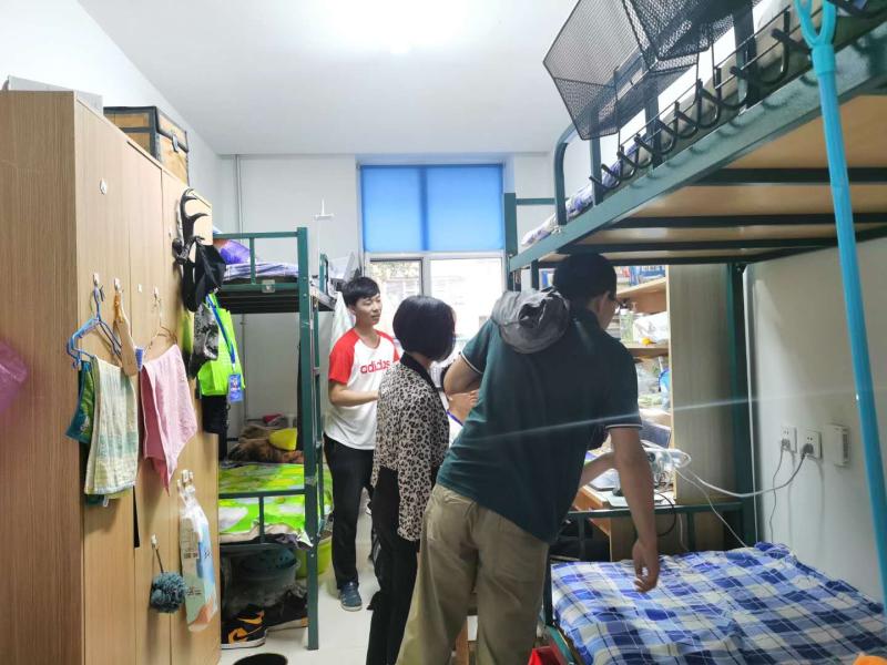 辅导员老师们走入课堂,随堂听课并考察学生出勤情况,随后到寝室进行了走访,主要对寝室物品摆放、卫生与安全情况等方面进行了细致检查,并提出了物品归纳摆放建议;对于表现良好的寝室老师们提出了表扬,对有待改进的寝室提出了要求并督促及时进行整改。在查寝过程中,各位老师还与同学们进行了亲切友好的交流,了解了同学们疫情期间居家学习情况,以及返校后学习生活安排,要求大家严格遵守学校关于疫情防控常态化工作部署,坚持做到“一日三测温、一点名”,严格执行出入校园审批制度等校园学习生活纪律要求。