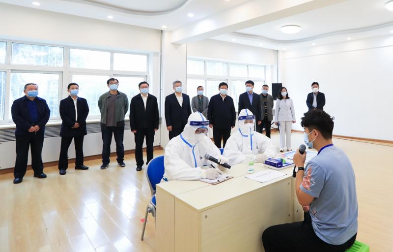 团委书记、辅导员霍睿扮演“授课教师”,2017级田宏远同学扮演“发热学生”,2019级部分同学本色出演学生。从“发热学生”深感不适,到授课教师带领该生前往临时隔离室;从“发热学生”自主测量体温、拨打电话报告给校医院和辅导员,到“发热学生”被校医院工作人员带离现场进行核酸检……整个演练过程井然有序,顺利完成,参演师生、校医院工作人员、卫生防疫部门工作人员全力配合,得到了观摩领导的充分肯定。
