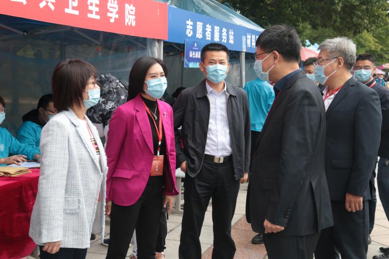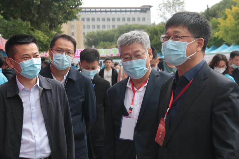 迎新地点后,首先亲切慰问了现场的工作人员,而后认真询问了当前迎新工作的进展情况,并对学院迎新工作给予了充分的肯定。随后,张希校长了解了现场疫情防控措施的落实情况,并重点强调一定要将防控措施进行到底。紧接着,校长向学院教职工表示,老师们要了解学生情况,帮助学生培养专业兴趣,同时尊重学生的选择。最后,张希校长与前来报到的新生亲切交流,并勉励新生在未来的学习生活中要珍惜时光,努力充实自己。