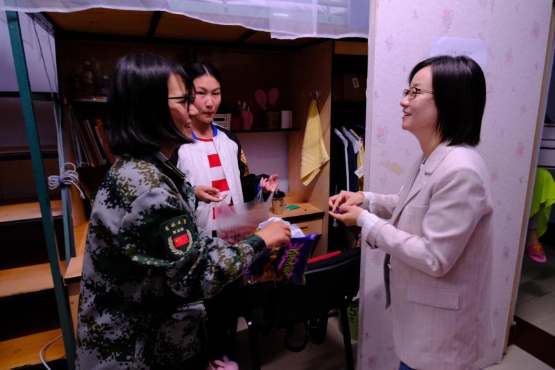 9月30日晚,冷贺璇老师与导助们带着礼物来到新生寝室,逐一走访,为新生送上精心准备的月饼和苹果,以及中秋的祝福。月饼代表喜迎中秋,苹果寓意着平安顺遂。冷老师祝大家中秋节快乐,希望大家都能在未来的日子里平平安安。收到礼物和祝福的新生们纷纷对感谢老师表达了自己的感谢之情,并同样祝福老师中秋节快乐。接着,冷老师和新生们谈论各自家乡的情况,还聊起了同学们在初入大学这段时间里的点点滴滴,说到有趣的地方,大家都笑出了声。一时间整个宿舍洋溢着节日的欢乐。最后,老师叮嘱大家近日气温多变,要注意防寒保暖。同时严格遵守疫情防控要求,中秋假期期间不要随意外出,有问题或者需要帮助的时候可以随时与老师联系。这个中秋节虽然没有家人的陪伴,但是有学院和老师的陪伴,新生们也不再感到孤单。