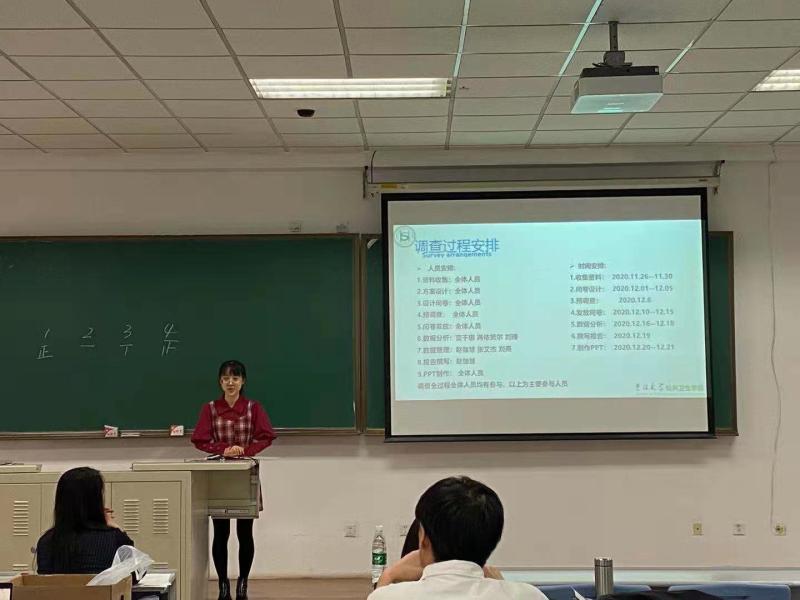 2017级本科生自行以5~7人分组,在流行病与卫生统计学教研室专业老师的指导下,聚焦大学生日常生活中的热点话题,自主设计方案,展开专题调研,撰写研究报告,精心准备调研成果展示。本次活动充分发挥公共卫生学科优势,将医学科研融入日常生活,将抽象理论结合具体实践,将课堂核心转移至学生本体,积极调动学生的科研积极性、学习自主性和医学责任感,极大地培养了学生的发现问题能力、自主思考能力、医学实践能力和团队协作能力,在优化医学生培养模式中发挥重要作用。