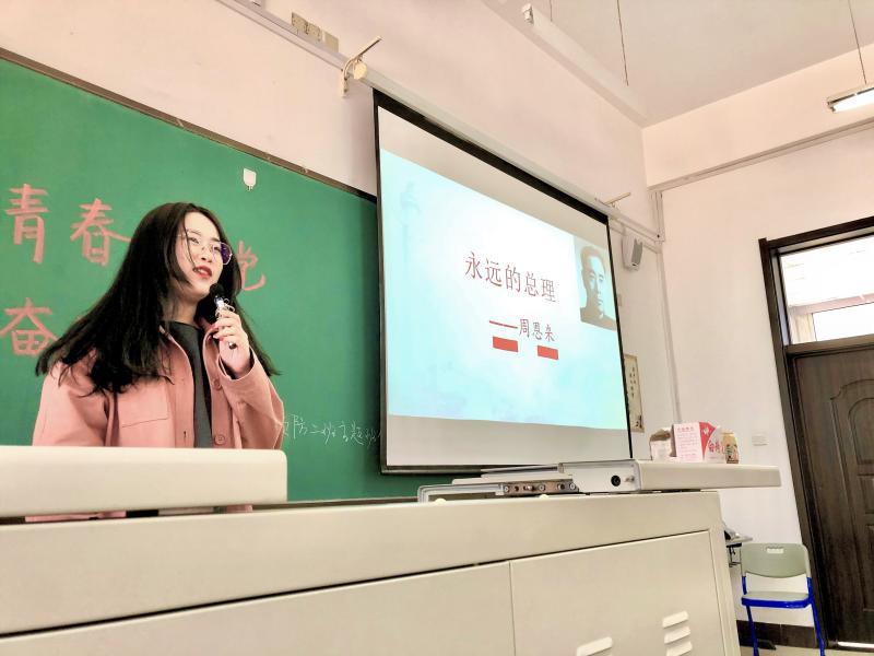 会议正式开始。首先,由田星月同学讲述党的历史,他的话语铿锵有力,述说着那段激情燃烧的岁月,激励着同学们要铭记历史,尊重历史,敬畏历史。随后,谭晓辉、田星月、王睿冕、薛铭洋为大家带来了诗朗诵——《我的祖国》。“青年兴则国家兴,青年强则国家强。”青年一代有理想、有本领、有担当,国家就有前途,民族就有希望。紧接着,寇竞文、井怡文、赵玉琪四位同学依次上台,给同学们深情讲述了四位功臣——开党功臣陈独秀、建国功臣毛泽东、外交功臣周恩来、改革功臣邓小平的光辉故事。随后,林钰钦,韦海玉,王子涵,初加仪走上台为大家带来了歌曲《少年中国说》,用青春的热血激情号召同学们砥砺前行,将青春力量化作投身社会主义建设事业的强大精神动力。