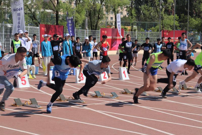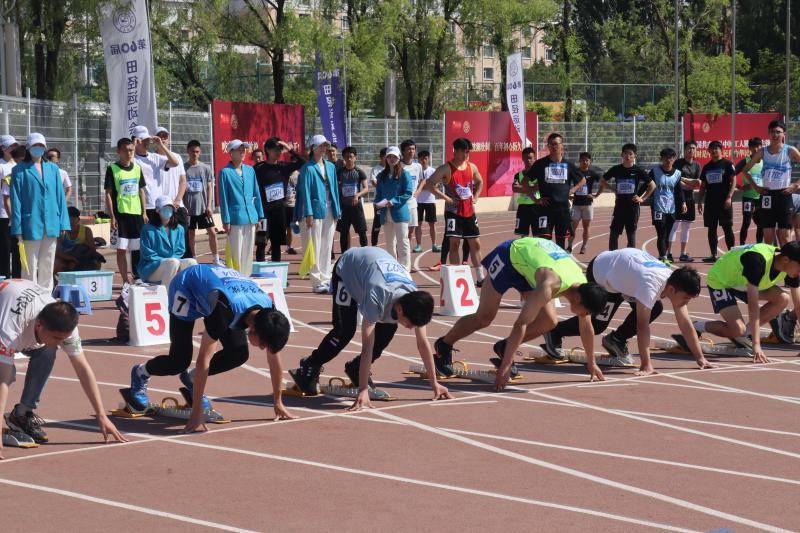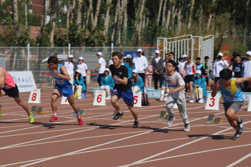 的王维和李默涵同学代表学院参加了本次竞赛。经过了短暂的起跑器调试,运动员们蹲下身子,静待口令。“各就位,预备”,随着“嘭”的一声枪响,运动员们闪电般地起身,后腿发力,冲了出去,向着终点发起了冲击。两位同学都势如破竹,将自身的速度发挥到了极致,可惜本次参赛的选手实力都很强劲,两位同学最终无缘决赛。