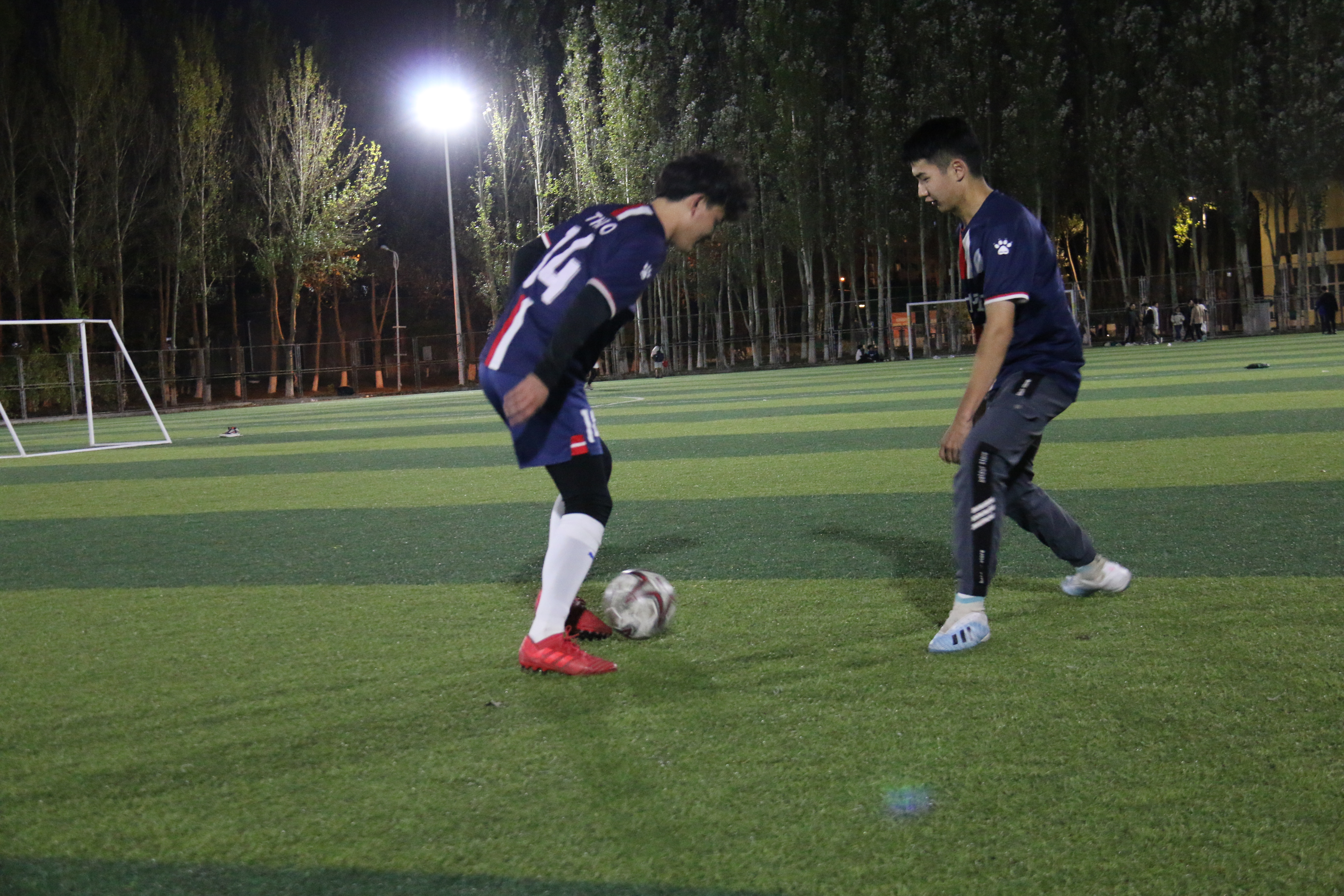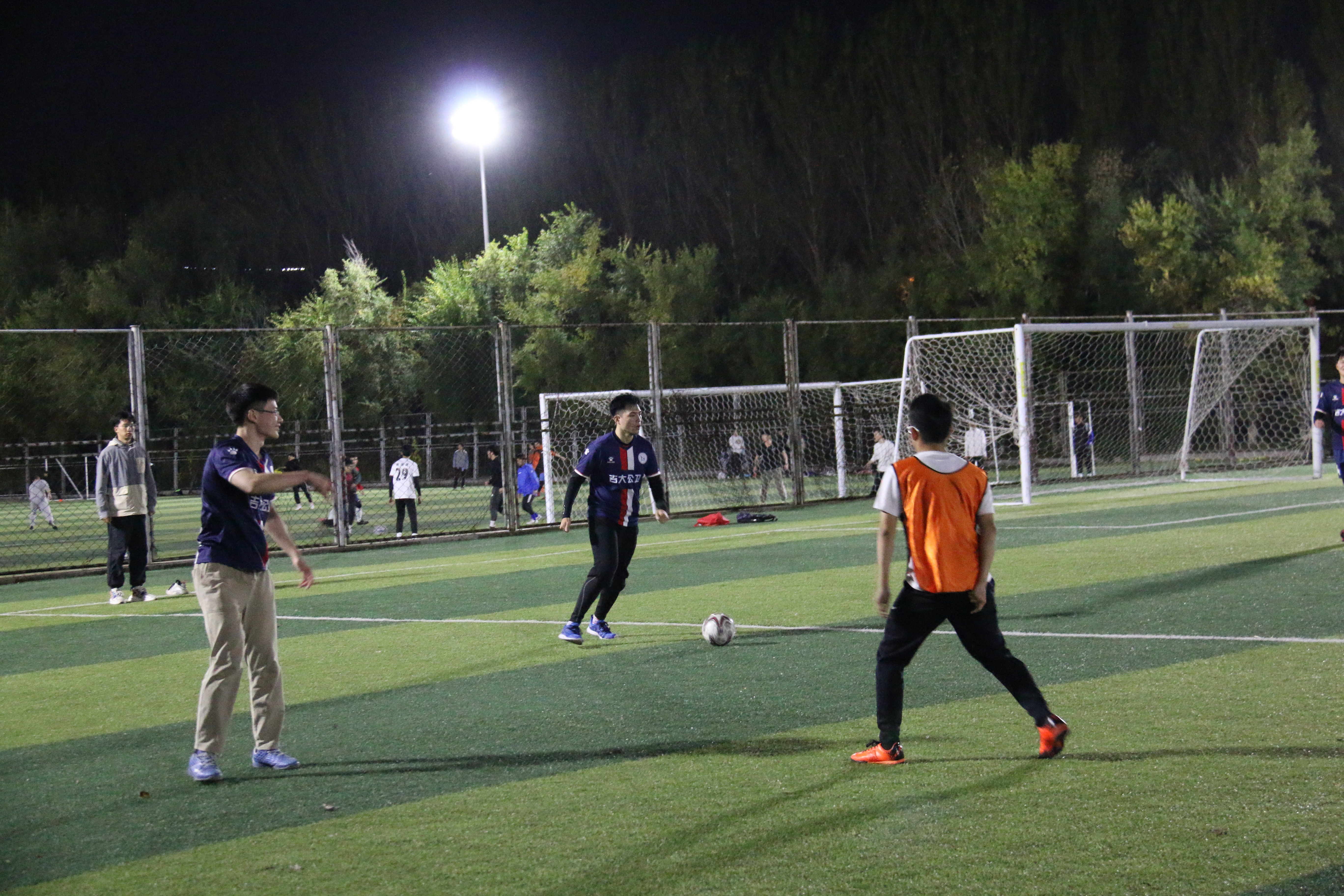 由于2021级报名人数较少,裁判决定将2020,2021级同学归为一队,2018,2019级同学为一队,并交给了新生队橙色队服。比赛正式开始,2021级同学刚开场就带着一股狠劲,不论是抢球还是进攻,都展现出了新生应有的积极向上的精神风貌,在流畅的团队配合和个人的进攻技巧的结合下,新生队先下一城。当然,学长们也身怀绝技,凭借着老道而成熟的经验和成员之间的默契,他们很快地追赶上了比分。就这样,你来我往,上半场的比赛结束,新生队2:1领先。经过短暂的休息,下半场比赛拉开序幕。新生队依旧敢拼敢抢,但又有些急于进攻,被老队员们抓住了机会,成功破门。双方积极上抢,不惧对抗,但又不失和谐友好,牢记“友谊第一,比赛第二”的体育精神。中途,一位新生不小心腿部抽筋,也被队员们及时拉伸,抬到了场边休息。最后,这场激烈的交战以3:3的比分圆满收尾。
