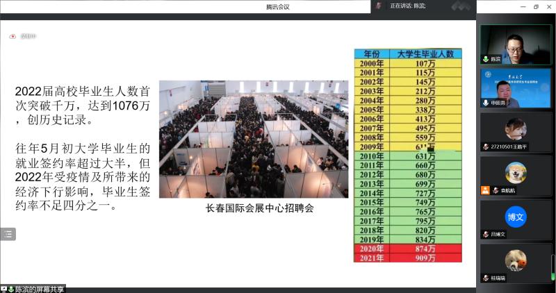 首先,陈滨教授分析了2022届高校毕业生就业签约率及其相关影响因素,紧接着,他结合自身与周边朋友的亲身职业发展经历向同学们充满深意地解释了“什么是好工作”、第一份工作对职业生涯的重要性;而后借用大量数据分析了国际核医学特点,转而细化至核医学工作安排介绍与未来影像学发展,阐述了几个同学们对核医学的常见误区,如“是否需要值夜班”、“辐射剂量大小”等;最后详细介绍了中日联谊医院核医学科的历史沿革、所获荣誉、临床组成,重点讲解了PET分子影像中心。